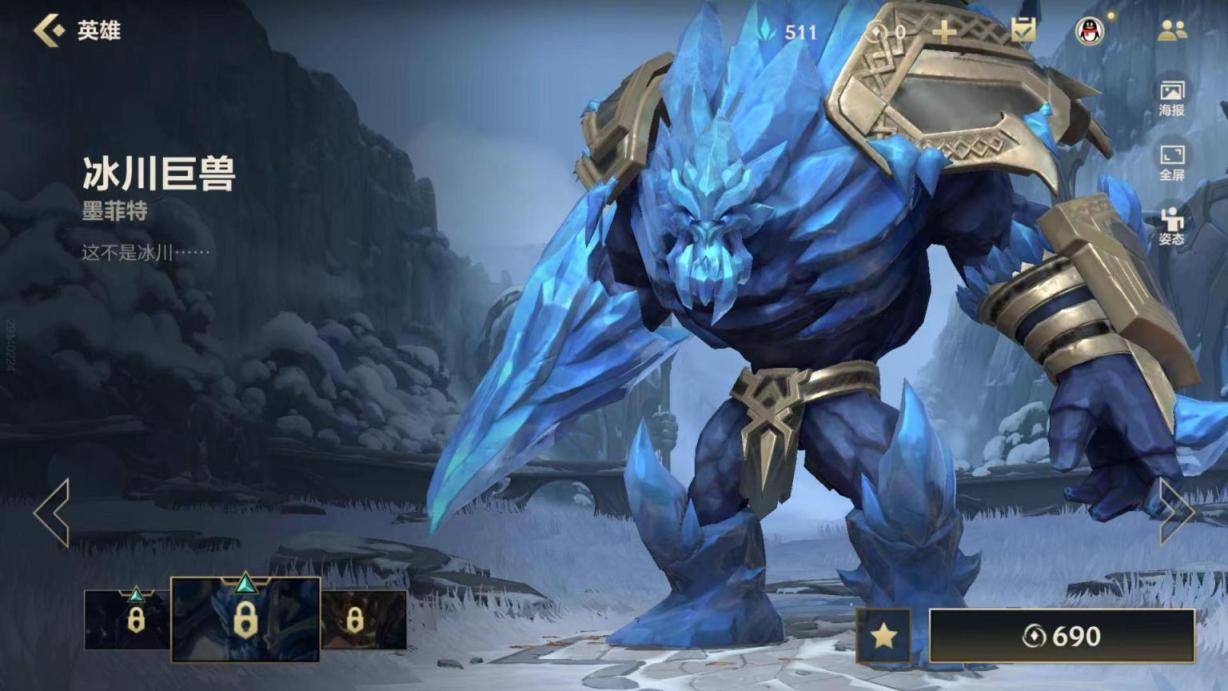 英雄联盟手游冰川巨兽皮肤可以再商城中购买,目前售价是690点券,折算人民币就是69元左右,这款皮肤特效好看,值这个价。