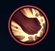 3、W技能:黄金圣盾。释放出一道帝王光环,使周围敌人减速20%,持续2秒,同时提供一个可以吸收65伤害的护盾,持续5秒。附近每多一名敌方英雄,吸收伤害增加12.82(2.1%最大生命值)。