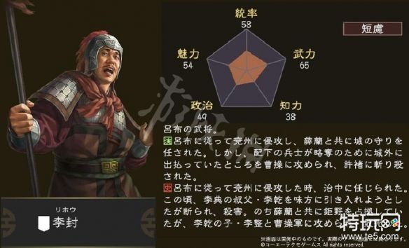 三国志14武将李封厉害吗?他是吕布的一名手下,有些玩家可能对他不是很了解,游侠小编这里给大家带来了三国志14李封属性资料介绍,一起来看下吧。