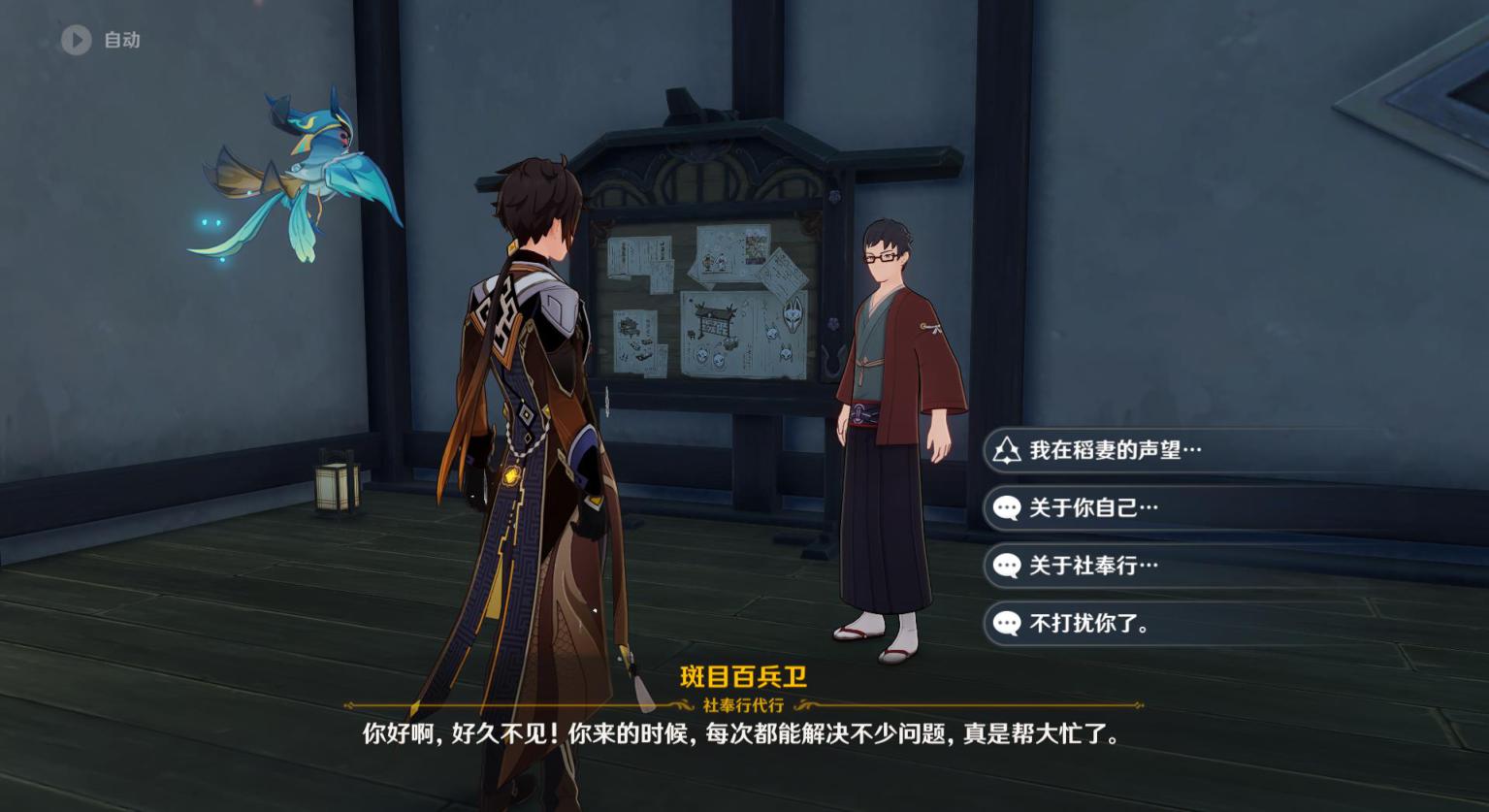 8、到达位置后与斑目百兵卫对话,选择我在稻妻的声望选项,进入稻妻地区的声望系统。