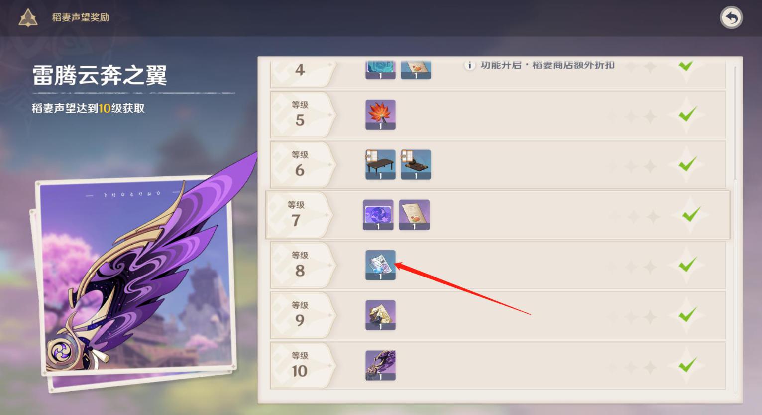 9、同样是通过声望系统内的讨伐悬赏、居民请求、世界任务以及世界探索这四种方式后将稻妻地区的声望提升到9级就可以领取到雷神瞳共鸣石的合成图纸。