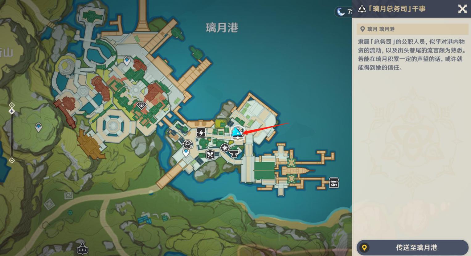 11、璃月地区的岩神瞳共鸣石图纸需要来到璃月港总务司干事处。