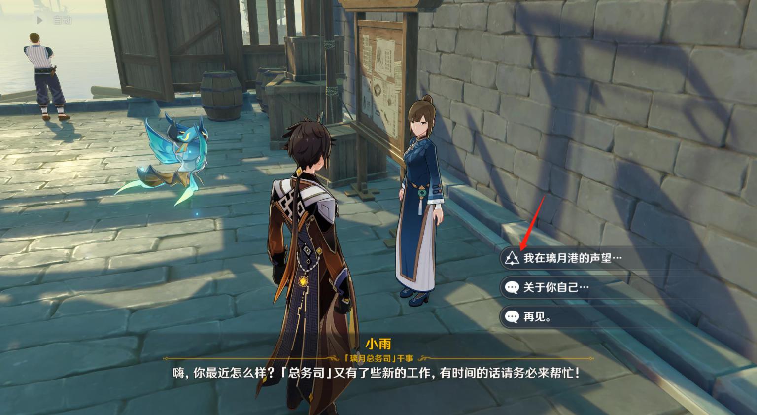 12、到达位置后与NPC小雨对话,选择我在璃月港的声望选项,进入璃月的声望系统。