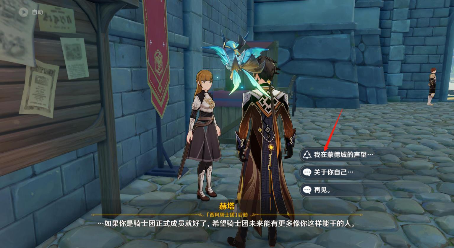 16、到达位置后与NPC赫塔对话,选择我在蒙德城的声望选项,进入蒙德地区的声望系统。