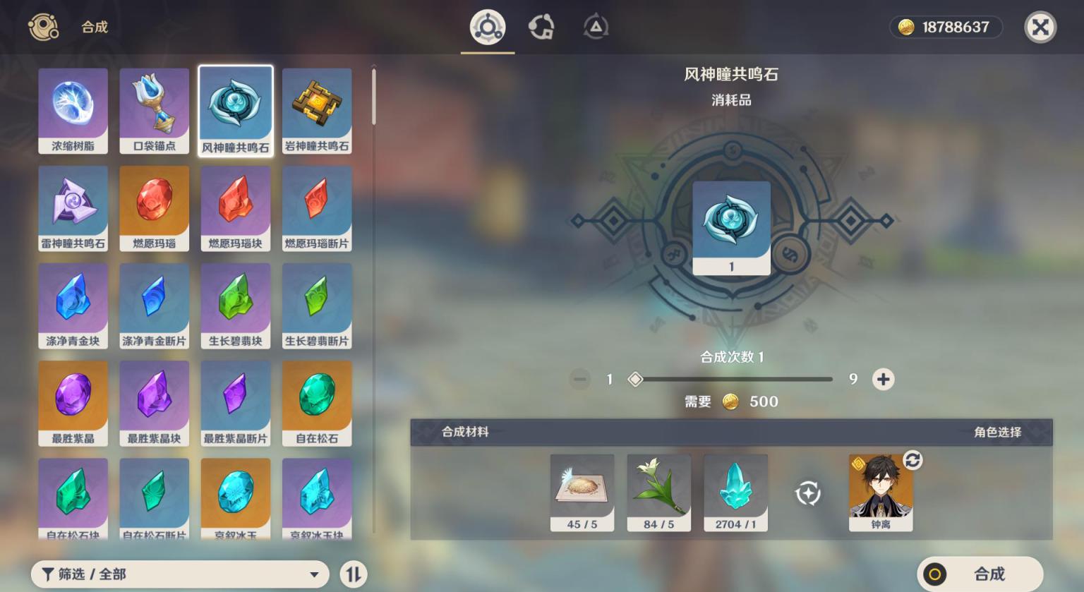 各地区的神瞳共鸣石都需要在声望系统内获得图纸后才可以在合成台处使用相应的材料进行合成。