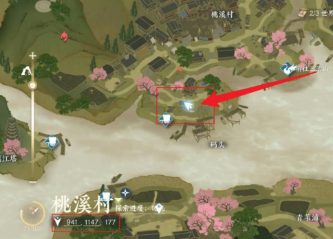 1、进入游戏,前往桃溪村坐标(941,1147)。