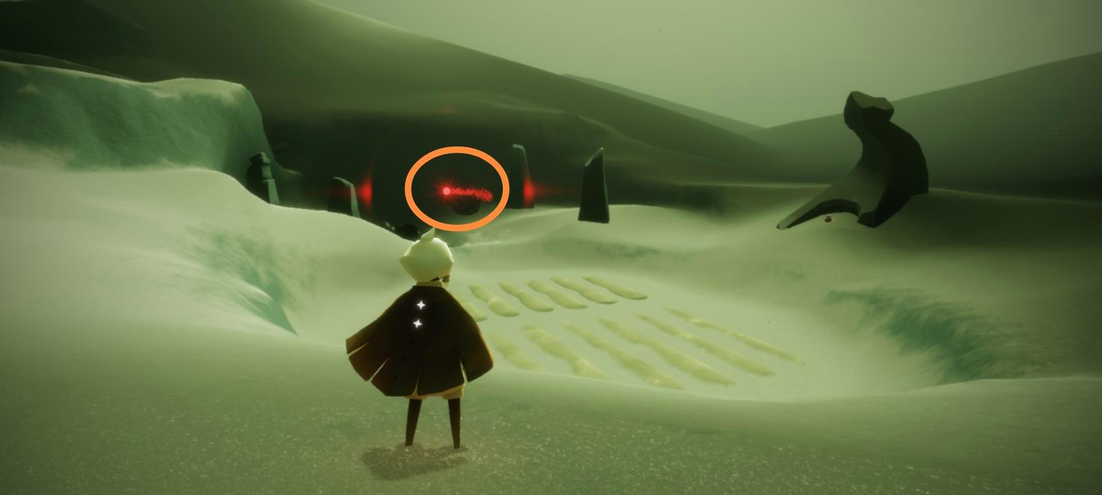 4、穿过方舟后继续往前走,在最里面的螃蟹洞前就可以看到红色的光,触碰红光就可以收集到念之灵了